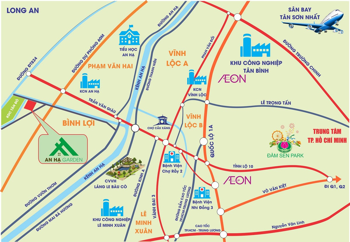 Sở hữu vị trí đắc địa nằm ngay trung tâm xã Bình Lợi, là khu dân cư mới đầu tiên được quy hoạch đồng bộ theo Chủ trương của Thành phố, thừa hưởng cơ sở hạ tầng phát triển đồng bộ, giao thông di chuyển thuận lợi. Khu dân cư An Hạ Garden kiến tạo vùng đất mới, nơi khởi sinh một tổ ấm viên mãn, nơi những giá trị sống được lưu giữ và trân quý.